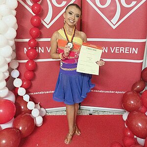 Lisa Marie Schanz ertanzte sich heute beim Steckenpferdpokal in Osnabrück im Turnier der Solo Jugend A-Latein im Finale einen super 3. Platz 🥉💪